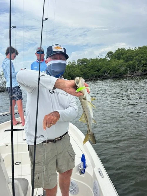 The goal in backcountry is a Grand Slam, that is Tarpon, Snook Redfish and Trout. Sometimes we settle for a Slam which is only 3 of the 4 species. It still an accomplishment. The last few trips have been that way only 3 of 4, if we get a Tarpon, we don t get a Redfish.
