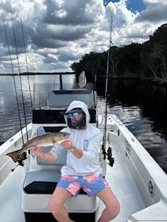 This week’s forecast messed up a couple days of fishing. We got out on Saturday in a heavy fog in the morning and flat calm until around 2 pm. I had a plan and it worked out; we caught a handful of Snook and some Trout while working a shoreline. We heard a big blow up and saw a handful of giant Tarpon. Tarpon were really thick and we managed 3 good bites. It was getting hot and sun was straight up and fish went down so we went back to fishing the shorelines. We caught more Snook and a couple Redfish and decent Trout.